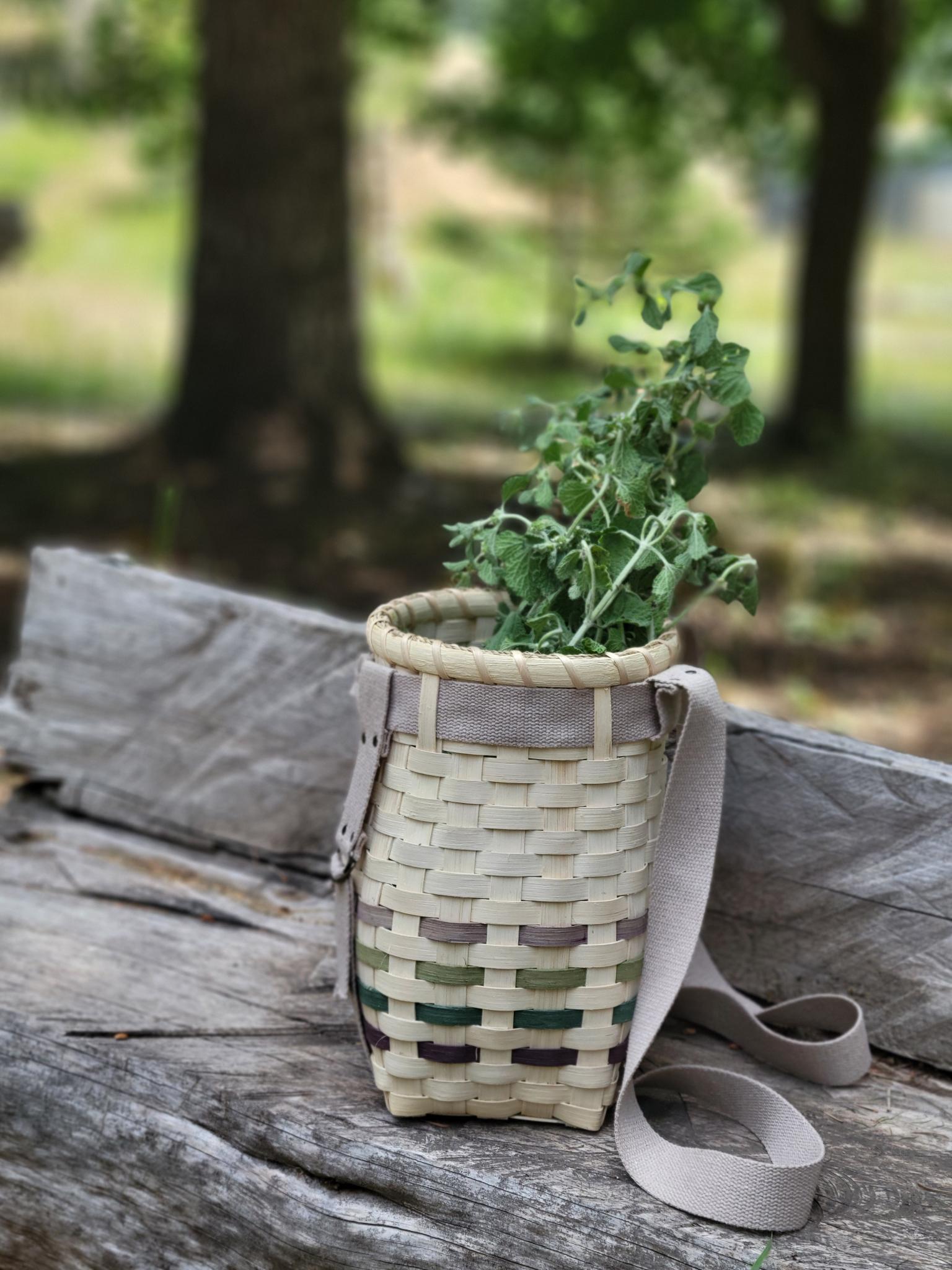 Each gathering basket with shoulder strap is thoughtfully handcrafted by me, a local Northern Idaho artist, and made to your specifications, with custom options for size, color, and overall style.